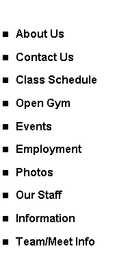 Check our Facebook for Emergency Closings Closed for all Classes 12/30-1/3 (yes there is class on Saturdays) Extra OPEN GYM!!! Monday Dec 23 1230 to 130 , Friday Dec 27 1-2, Monday Dec 30 1230 to 130 Tuesday Dec 31 11-1230